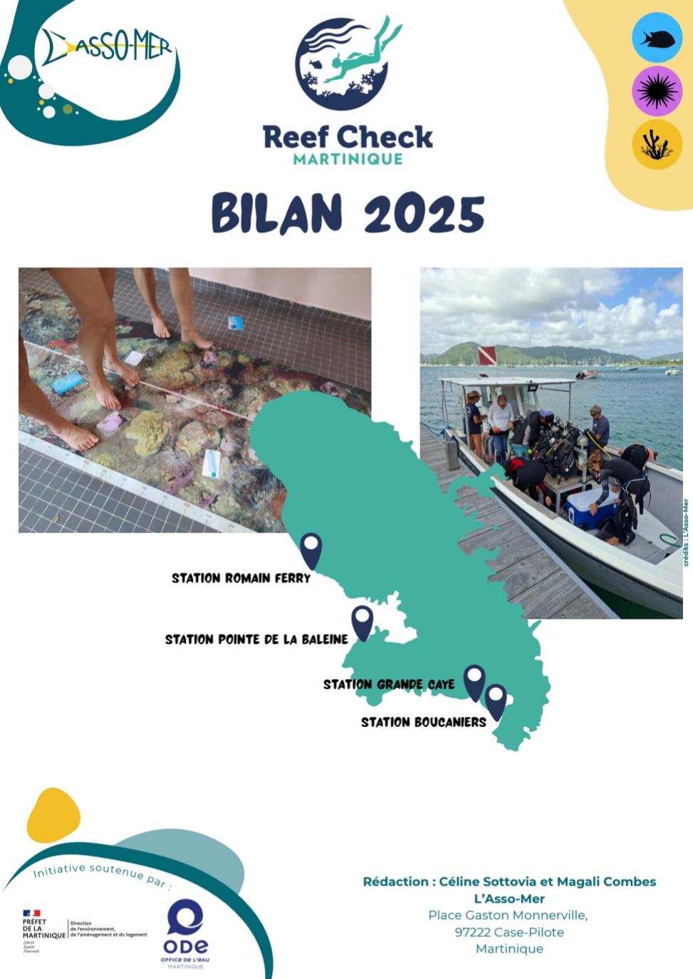 En 2008, l’antenne Reef Check des Antilles française est créée. La première station de suivi des récifs coralliens a vu le jour en Martinique ! Au cours du mois de mai 2009, une équipe, composée de scientifiques et de plongeurs, a inauguré la station de La Pointe de la Baleine située à quelques encablures au sud-ouest de la baie de Fort de France. En 2022, c’est l’Association l’Asso-Mer qui anime les actions Reefcheck en Martinique.
